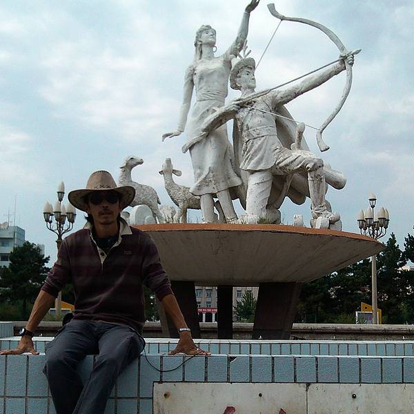在具有内蒙特色的火车站前又玩拍照,只是这里的旅游占经济收入很大比重,以至于当地很多人都从事相关行业,火车站拉客的自然不会逊色,仅仅几张照片的功夫我们就被一个大妈盯上了,而且大妈很执着,尽管我们已经说提前预定好了住宿,大妈还是紧追不舍,一直推销,追的我俩满广场跑,真是打一枪换一个地方啊~~