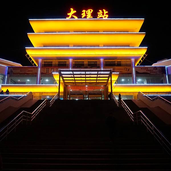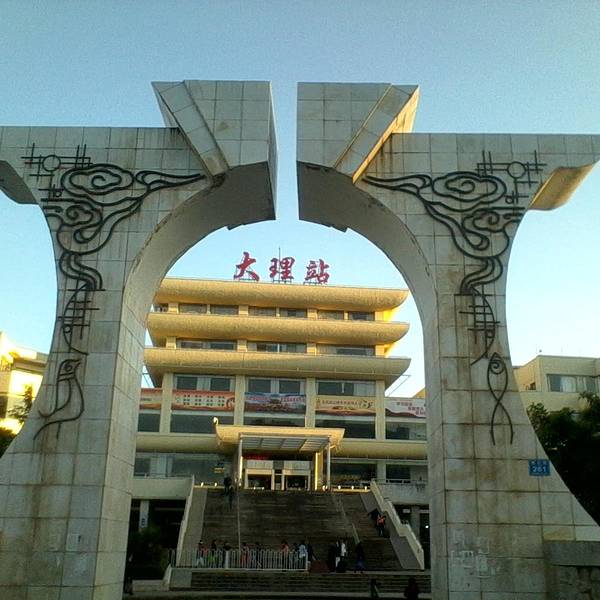 - 大理站不大,但大门很别致,车站旁边的公交车场有直达崇圣寺三塔的公交车,我来的时候是半夜并没有看到