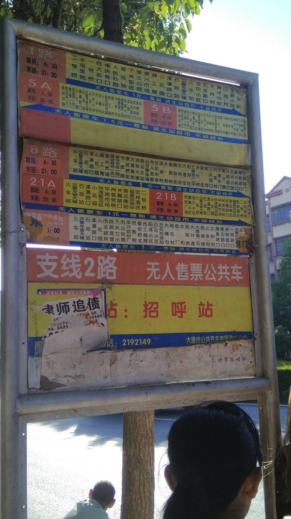 酒店一拐弯有公交车站,坐8路到大理古城,票价2元。沿途风景房子都是白色的