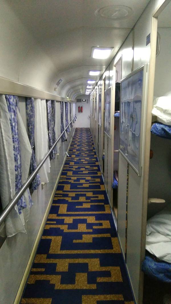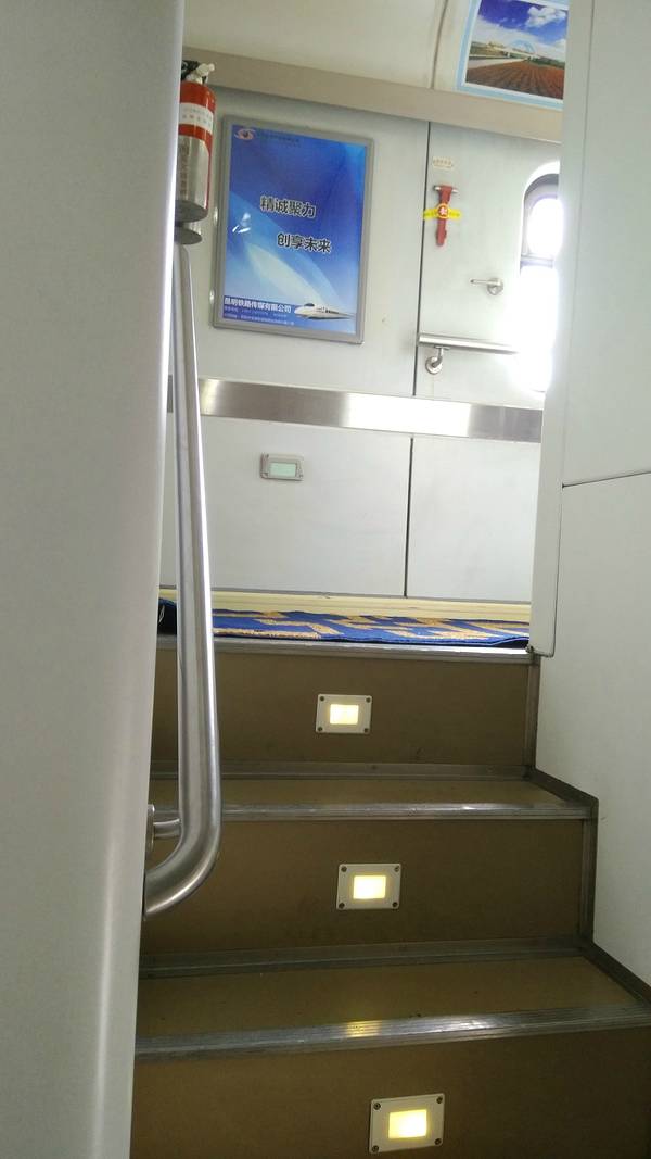 火车的外观是云南的景点展示,火车分上下两层,所以即便我买的是硬卧上铺,也不需要爬太高。火车上到处都是玛咖的广告,强身健体没错,可不能包治百病哦。
