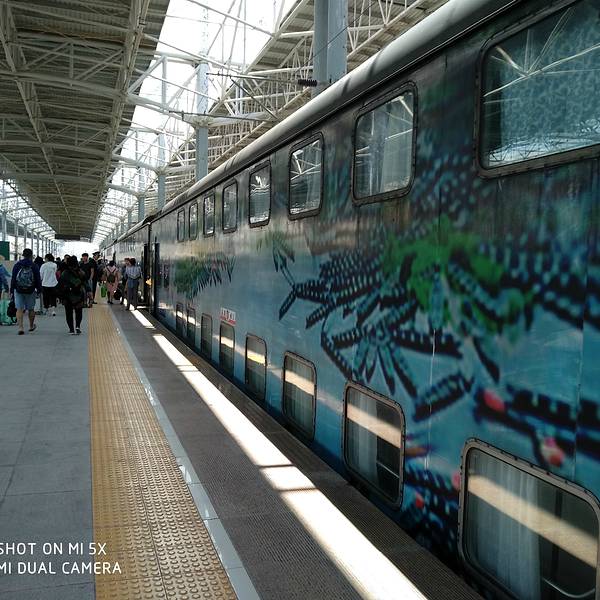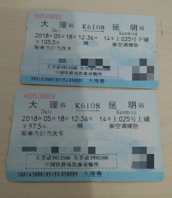 依依不舍地离开了大理古城,返回昆明。大理站不大,但大门很别致,车站旁边的公交车场有直达崇圣寺三塔的公交车,我来的时候是半夜并没有看到。火车站直达崇圣寺三塔这列火车感觉就是旅游专线,之前从来没有坐过...依依不舍地离开了大理古城,返回昆明。大理站不大,但大门很别致,车站旁边的公交车场有直达崇圣寺三塔的公交车,我来的时候是半夜并没有看到。火车站直达崇圣寺三塔这列火车感觉就是旅游专线,之前从来没有坐过这样的。车身画着美丽的风景,它的车厢是上下两层的,每走一节车厢都要上下台阶,所以列车员不能推小车卖东西,走多了真的会走晕。漂亮的双层车厢特色列车服如今已经开通了昆明到大理的动车,所以这趟很有特色的火车已经被取代,现在再搜索K6108已经搜不到它的信息了,发张火车票纪念一下吧。上层下层酒吧餐车离我好远,感觉走了十几分钟才到。沿路风景