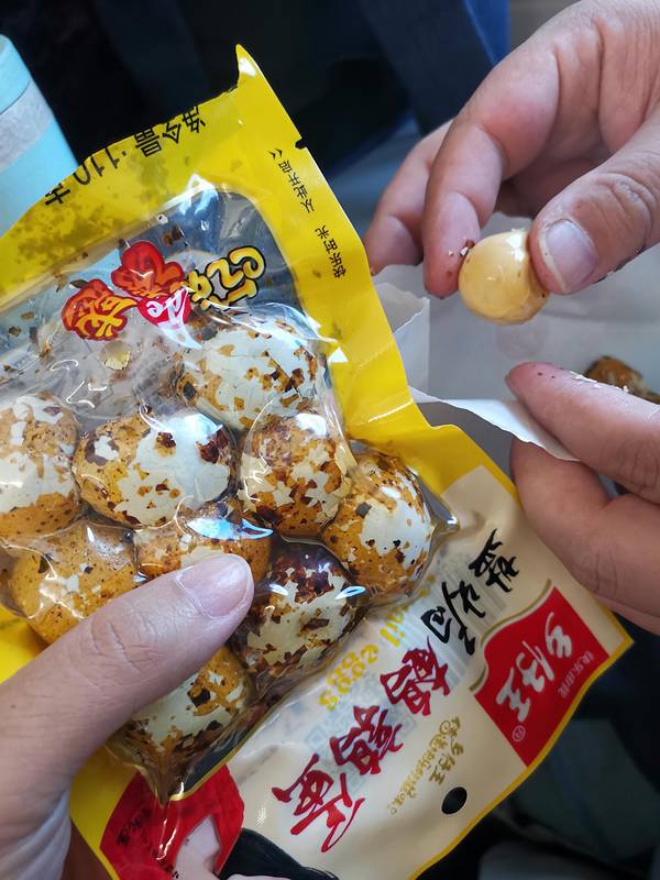 成功,竟然有两个位置刚好没有人,经停的时候行李都准备好,随时站起来让座了。好饿,高铁买了一包鹌鹑蛋7块,性价比算高的了