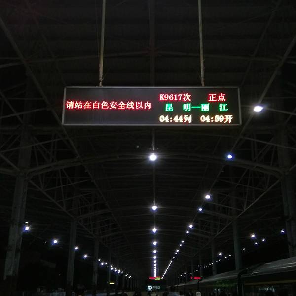 从民族村回到昆明火车站,进了站才想起来行李还寄存在站外的商店里,赶紧跑出站取回行李再进站,多绕了一圈过了两次安检,万幸时间还来得及。坐晚上10点的火车K9616到大理,到站时间是凌晨4点40,这个时间下车我...从民族村回到昆明火车站,进了站才想起来行李还寄存在站外的商店里,赶紧跑出站取回行李再进站,多绕了一圈过了两次安检,万幸时间还来得及。坐晚上10点的火车K9616到大理,到站时间是凌晨4点40,这个时间下车我也是醉了。下车的人还不少呢。出了站有拉客住宿的人,可以直接送到大理古城,大家也是很辛苦的。