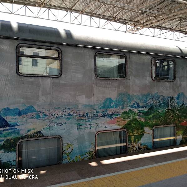 火车的外观是云南的景点展示,火车分上下两层,所以即便我买的是硬卧上铺,也不需要爬太高...火车是凌晨去往昆明的,网络取票在楼梯的下方,取票后上楼梯二楼是进站口,大理站很小很旧,开往昆明和丽江的火车很多。