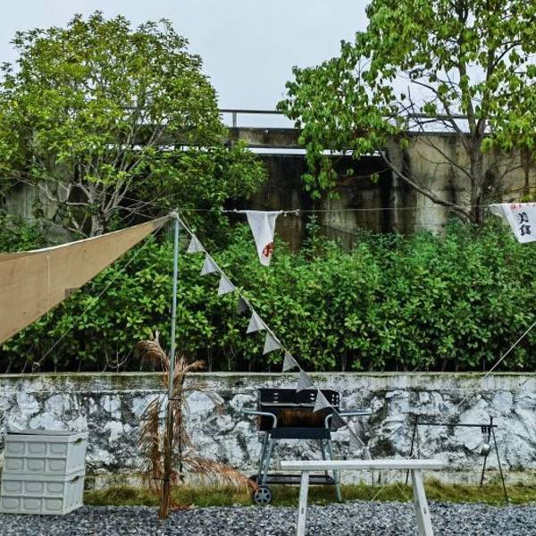吃烧烤的话坐在外面舒服些有晚风吹过来不会很热还有小天台可以上去看夜景