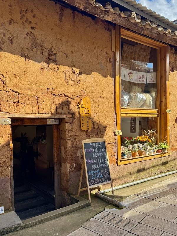 3. 夯土小店:见鱼面包店、土土咖啡屋的土黄色老墙、木质门窗,都是天然的拍照背景,用光影做点缀,松弛感大片轻松拿捏。