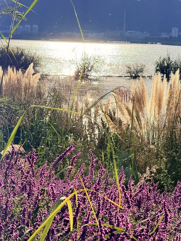 下午3点后入园刚刚好☀️,既能避开正午的烈日,又能捕捉到超柔和的光影。阳光洒在波光粼粼的湖面上,碎成无数星光,紫色的花田在阳光下泛着柔光,随手一拍都是氛围感大片。等到日落时分更是绝美🌅,夕阳将西山染成暖橘色,云层从粉橙过渡到玫红,霞光铺满湖面,芦苇也被镀上一层金边,坐在湖边静静看着落日沉下山头,浪漫到不想离开。
