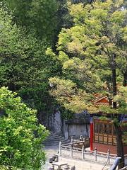 4. 山间小径:沿着石阶往上走,拍掩映在绿树丛中的红墙建筑,妥妥的“曲径通幽处”诗意感