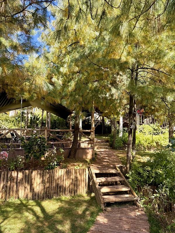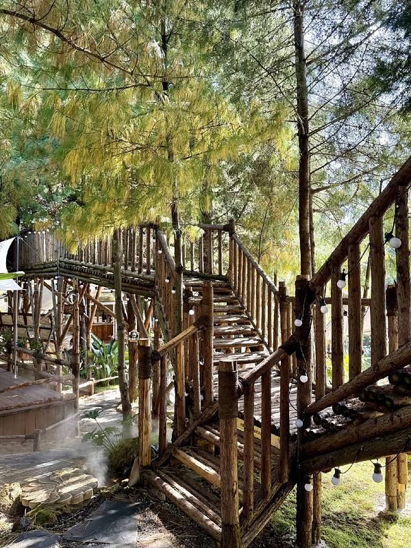 整片园区被原生态松林环抱,绿植茂密空气清新,满满自然山野气息。林间原木栈道、特色树屋搭配氛围感串灯布景随手好看,光影氛围感超足,森系拍照特别出片,远离城市喧嚣,安静又治愈,放松感拉满🌿