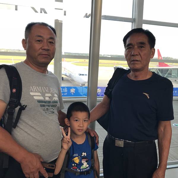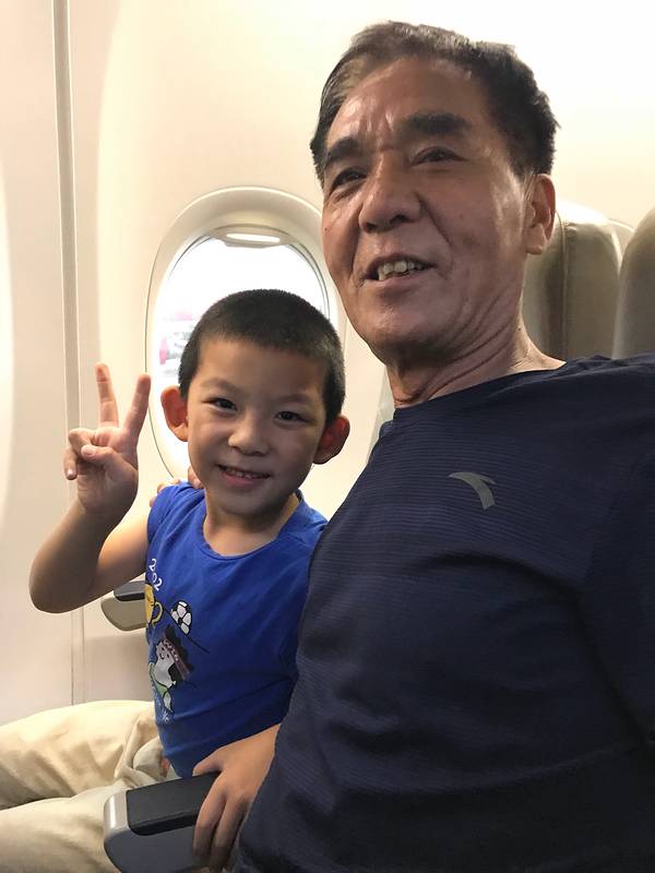 9月17号下午到达无锡硕放机场,来张照片儿子和老丈人第一次做飞机,很开心