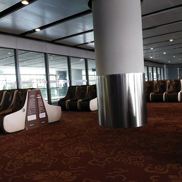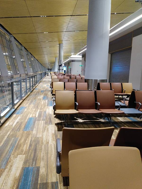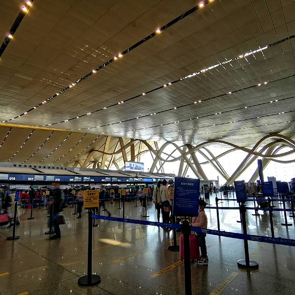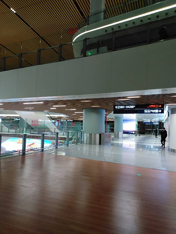 机场很大,走到飞杭州的40多号登机口非常远。而且还要从三楼下到二楼。附近的洗手间坏了,餐饮店也没有。还得上到三楼走一段才有。