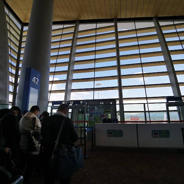 周末机场的人流量适中。办托运不用怎么排队,还有紧急柜台。安检通道挺多,工作...云南行的最后一天,从昆明返杭。从滇池海埂大堤打车到昆明长水机场,差不多是45分钟的时间。据说从斗南花市过来,时间也差不多。