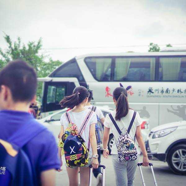 小桃和小丫如今长大了,行李都归她们负责, 其实是觉得拉着行李帅些吧,哈哈这位眼镜哥哥就是我们的团长啦~~ 不过全程除了在动车站和崇武古城入口清点人数外,始终是不见踪影的。团徽团徽,嘻嘻