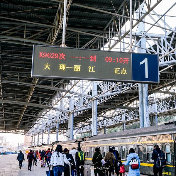 计划中是坐汽车在 丽江 到 大理 的,但是去到 丽江 客运站正打算买票的时候被告知当天的班次有更改,已经没有当天的车到达 大理 了,百般无奈,拉着一个超大行李箱还是坏的,这时候不知道该怎么走。有想过在 丽江 过一夜,但是又会多花了一天时间,考虑了很久还是决定坐火车直往 大理 去!就在 丽江 客运站公车站转车坐18号车到火车站。看到过很多人在 丽江 火车站门前拍照。也许那些都是坐火车来到这个梦想的地方吧,就像我们,一下飞机就激动不已,总会默默的在心里萌发出梦想成真的心思。这时候,正是欢迎进去彩云之南的时候,而我们这个时候确实要走,往更远的梦去~