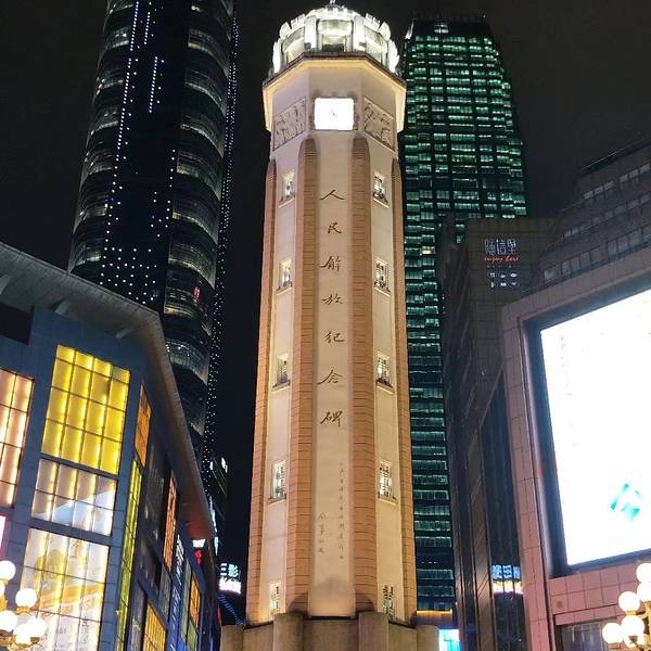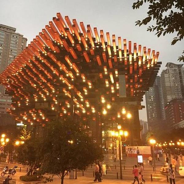 穿过人群,问路问到了解放碑大雨中的山城有一种说不出来的凄迷味道,幺鸡独自撑伞走在深夜的解放碑街头。此时的解放碑少了拥挤的人流,多了无言的寂静。陌生的城市,一个人独在异乡的寂寞,这份感觉是到此一游的人们永远体会不到的。从洪崖洞走到解放碑的路上会,看到一座比较特别的建筑——重庆国泰艺术中心。