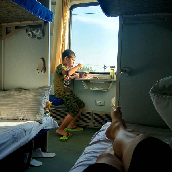 做为了火车上的伙食背包 相机包 行李箱火车走廊窗外的黄土坡火车上吃方便面的西安小男孩