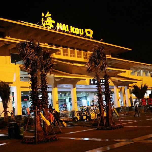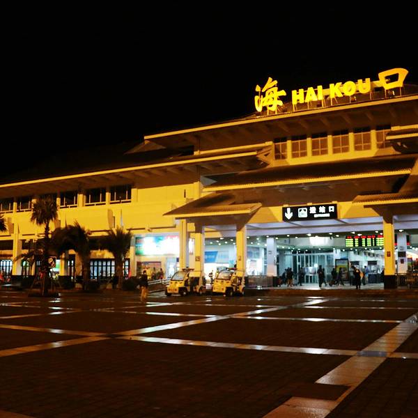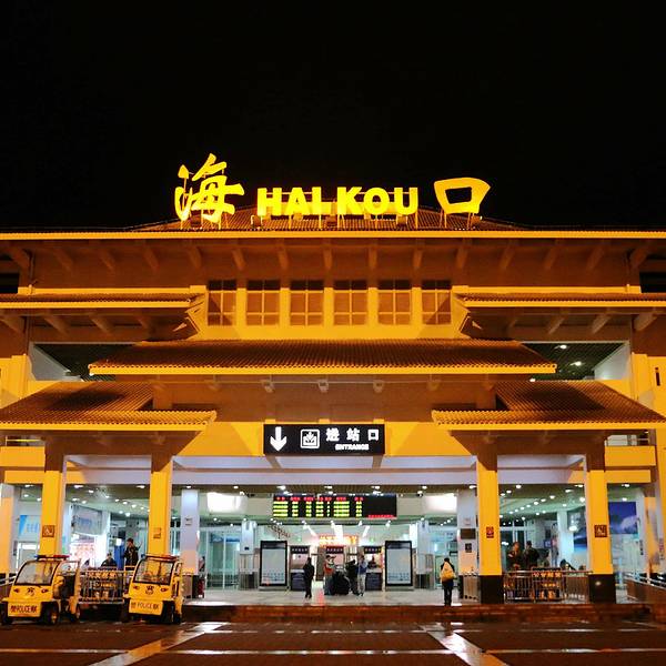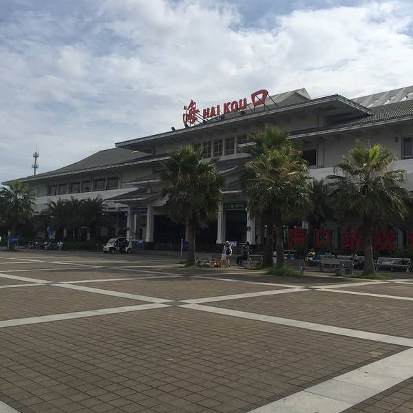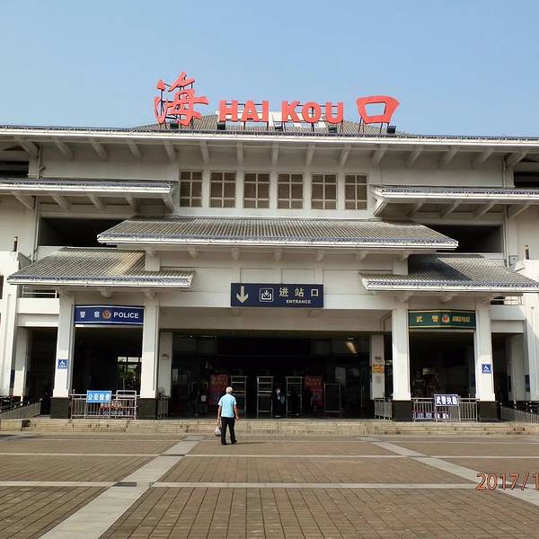 海口站在粤海大道,建于2004年,距离海口市区20公里,站前广场面积很大,宽敞整洁,车站的主体建筑是白色的,进站口上面有四层错落有致的房檐,看上去有挺有清凉感的。