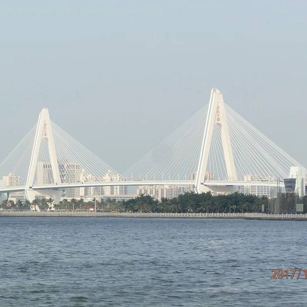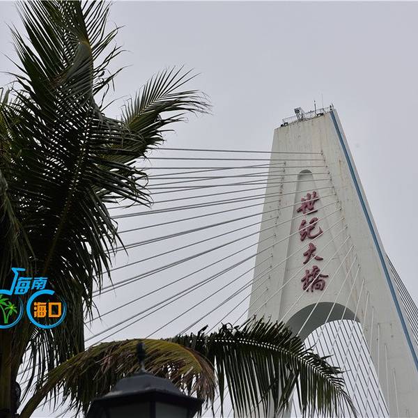 想了解火车过海全程的建议观看《航拍中国》第一季海南篇。 中午时分到达海口,出车站,海口站前,乘客们关注的目光下装车。经飞机火车双程运输,车完好无损。装车完毕,站前自拍一张装逼照(首次装逼经验不足,骚亮的小车居然没入镜),赶往25公里外的海口市。海口站前自拍留影,突然发现自己自拍技术特别差 冬季的海口,一如既往地阴晦,就象海口的朋友介绍的,冬季少有阳光灿烂的日子。不过气象预报的小雨没出现,对我而言已是最大的恩惠。一小时后进入海口城区,直奔世纪大桥。世纪大桥世纪大桥