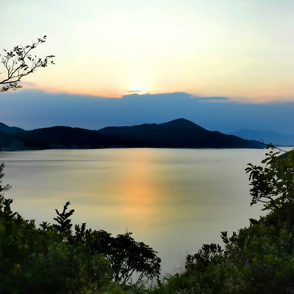 开始的半个小时,路还是挺不错的,平缓而不急促,风景也宜人,有在风景画穿行的感觉。直到开始转向西湾山方向时,开始一步比一步举足唯艰,尽管如此,可每登高一步映入眼帘的风景愈发摄人心神,虽艰难但却没有退意。从浪茄到东壩这段路是最舒适平坦,半山的栈道也是港剧中经常出现的场景,但为了在天黑前坐到出租车离开,并没好好欣赏,只是随手拍下几张远景。在出租车站点前一公里左右也让人驻足不前,一边是亿万年遗留的流纹岩柱群,另一边在夕照下波平如镜的万宜水库静静地沐浴着余辉。身体虽然累,眼睛却不曾错过一分一毫。可喜的是,尽管离开时天色而然暗,可如绳网撒开的漫天霞彩,水天相衬,形成一幅柔美的水墨长卷。如象在庆祝我们的艰辛旅程结束一般。
