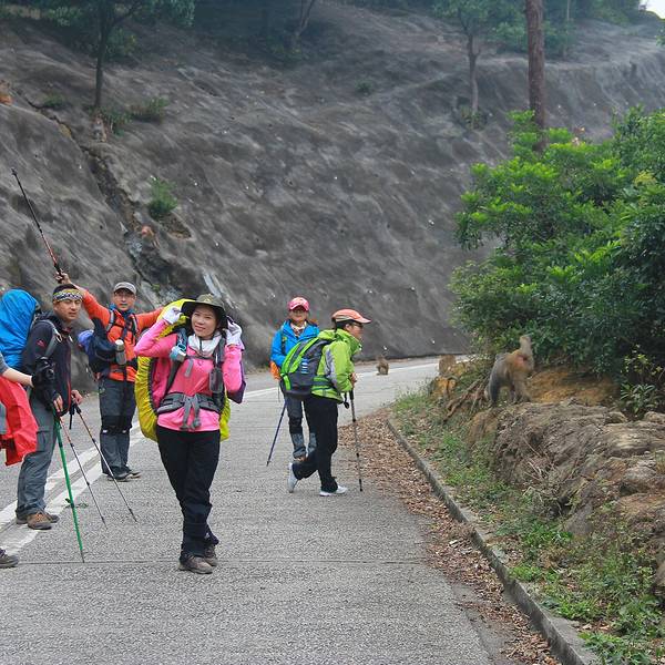 香港生态环境保护的很好,这些猴子非人工饲养,就是山上的猴子,没有人类的攻击,猴子显得更亲近,也...天亮了,林中的小鸟叫醒了我们,我起来煮好稀饭,大家都路续洗漱好了,简单的吃过早餐,收拾好行装继续出发。