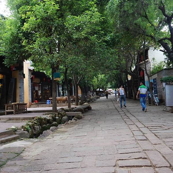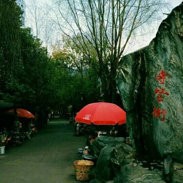 吃过一碗豌豆凉粉后开始进入寺登街,一条绿树环绕的石板路一直向前延伸,路边还有潺潺的水源向前流淌,抑制不住兴奋之情背起包就直奔前了,50米左右的路程吧,一个四方街就出现在眼前了,在阳光下给我一种恍然入世的错觉,我这真的是在现代社会吗?