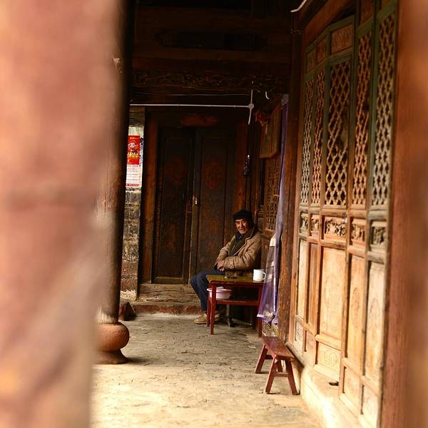 沙溪,一个真正人烟稀少的古村落,也许你会说,它之所以人烟稀少是因为交通不便,也不是不对,只是在周围的丽江大理都被过度开发的这些年,她依然遗世独立、安然世外,凝固尘封的漫长岁月。走进深处,你会发现这里没有闹腾的酒吧,没有赶集一样的游客打着小旗蜂拥而至,也没有过多五花八门的商铺,甚至到了晚上,四方街连个人影都没有,有也只是稀稀拉拉,也只是且慢且行的路人。在这里真的可以感觉到时间的静止,这真的很适合过着慢一点的生活,这才是古城该有的样子。我在心里暗自默念道。安静、古朴、素雅,清净,纯澈,与世隔绝,不食人间烟火等等美好的字眼用在它身上真的不足为奇。一个与长城并肩入选2002年101个世界濒危建筑保护名录的地方,可见它的地位非同一般,一个被瑞士人投资保护与管理,所以说到这,你就想到如今的它的未来或许会让很多人为之欣慰而小庆幸。沙溪的老院子大多是红墙青瓦,中规中矩,四四方方,典型中的白族四合院,各种精致的雕画,稍