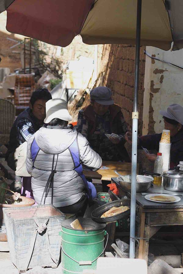 👉牛乳饼和羊乳饼是当地的特色,用新鲜的牛奶羊奶炼制而成,阿妈阿婆们用手绢包着摆在背篓上贩卖。