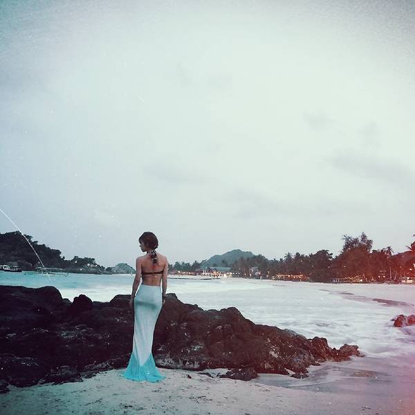 到了海滩,总想扮演一回美人鱼,坐在礁石上看着海。