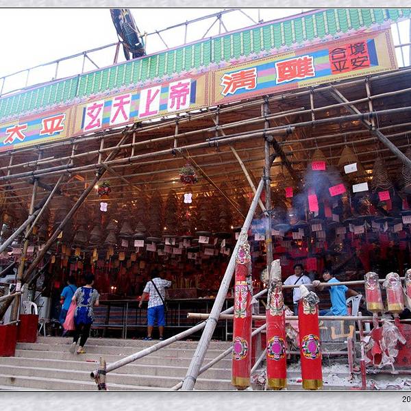 过去北帝庙前会搭建起三个挂满平安包的包山来祭祀,居民相信这些包子能保一家平安,“抢包山”的目的是为了尽可能多的抢到平安包,所以醮期后每个氏族都会精挑细选出身手最佳的人来抢包,旧时由于没有规则和人数限制,所以叠罗汉之后往往险象环生,现在的包山使用坚固的材料打造,而且同时只能有12位选手上包山,后来发展为现在的“抢包山”比赛,成为长洲“太平清醮”的高潮。现在这里依然是人最多的地方,游客在这里拍照留影,本地人来这里的上相祈福,香火鼎盛、烟雾缭绕。