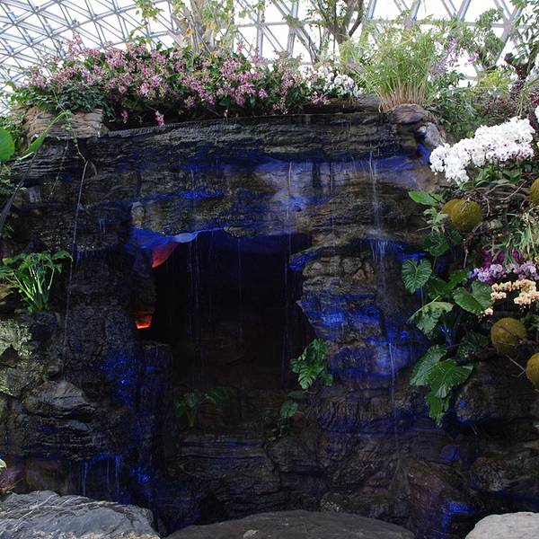 在矿井花园看瀑布,冬天在展馆温室观赏各类珍稀植物。
