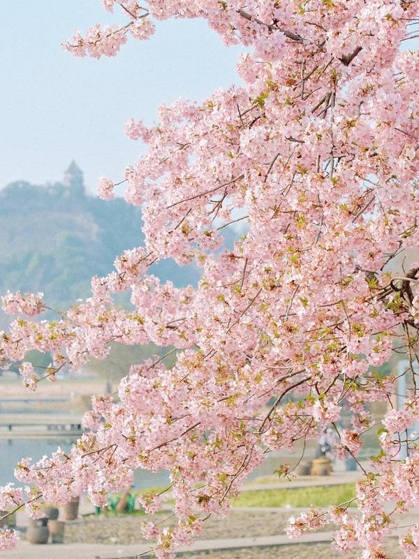 ❸河边樱花树下寻找独特机位,拉远距离拍摄大景,惊艳朋友圈!