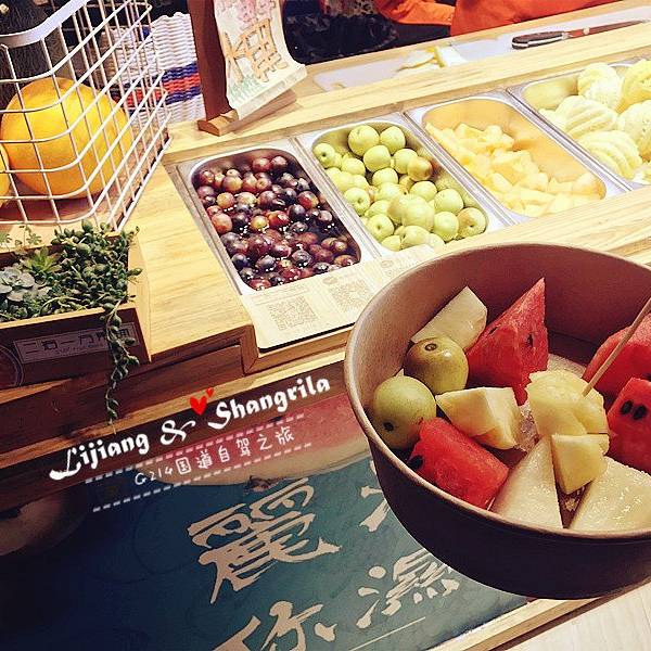 我已经被“二拾一平果铺”的包装盒吸引了一路了。哈哈,最后到五一街上逮到了。每餐饭后没有吃点水果总是觉得缺少了点什么,可小S同学又是个不喜欢吃水果星人。。冲着它简约又好看的盒子,买了点点水果,主要是小...我已经被“二拾一平果铺”的包装盒吸引了一路了。哈哈,最后到五一街上逮到了。每餐饭后没有吃点水果总是觉得缺少了点什么,可小S同学又是个不喜欢吃水果星人。。冲着它简约又好看的盒子,买了点点水果,主要是小S唯一喜欢的几片西瓜。。论斤秤的,生意很火爆。。这盒17元。实话有点小贵。。。路过“夏夏音乐工房”,女主认真地打着手鼓。围观的人好多好多。。店主热情的招呼大家进店坐坐。。后来才知道是《小宝贝》的原唱。。哈哈,当场有人提问“你会唱小宝贝吗?”,哈哈夏夏笑了。。晚上回到客栈我们度娘科普了一下。手机里留有昨天晚上还没受到围观的女主的照片,很有气质。。接着继续闲逛,一路都有惊喜。。比如很经常听到的“我在丽江等你”,还有遇见一间有特色的杂货店。比较好奇年代久远的电视机,居然还能播放。接着路过好评度很高的丁丁当当,但是太饱了不想吃。。今天的行程到这里就结束吧,明天还得早起。。离开五一街,各路小巷安静了好多,基本是没有行人了。。偶遇几个醉酒的人,也自觉避让走开。。。始终相信善待别人,别人也会善待你。。晚安,忘掉身体不适,期待明天的香格里拉之旅!