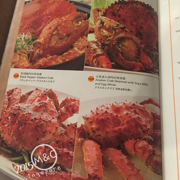 这一顿来坡国之前就在官网预定好的大餐,真切的花掉我3000多软妹币;再瞄一眼菜单,最贵是一只阿拉斯加帝王蟹,1万多1份——好吧,装作没看见。