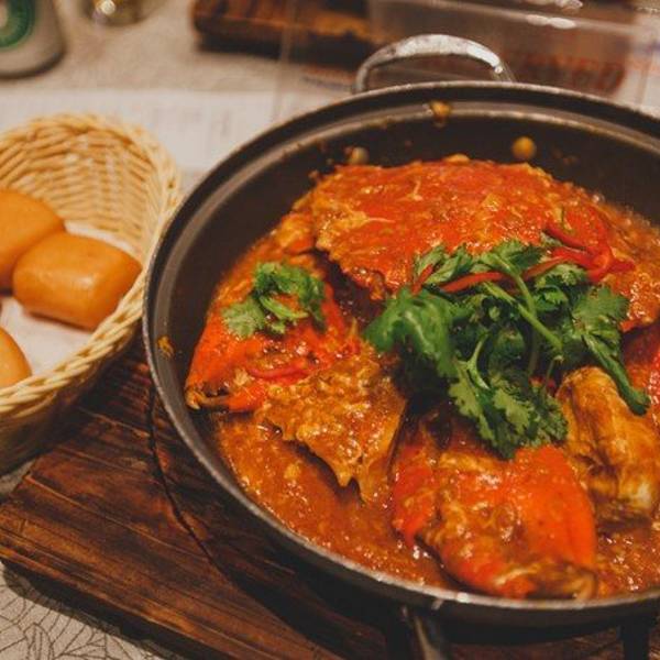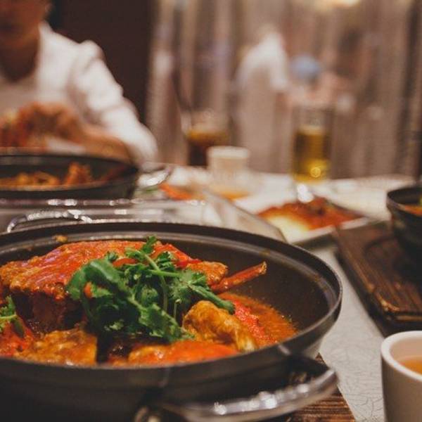 因为早餐吃太饱所以在牛车水的时候完全不想吃东西,晚上出去觅食,查到克拉码头有家很有名的辣椒蟹店,然后就动身前往。大概六点半左右到达,排号,前面有14桌。到附近溜达溜达之后在七点左右就入座啦。餐厅人均...因为早餐吃太饱所以在牛车水的时候完全不想吃东西,晚上出去觅食,查到克拉码头有家很有名的辣椒蟹店,然后就动身前往。大概六点半左右到达,排号,前面有14桌。到附近溜达溜达之后在七点左右就入座啦。餐厅人均消费三百RMB左右,但是我们忘记算服务费税费什么的点了套餐,然后,就变成了人均500RMB。可是餐厅的环境并不太好,很吵杂,氛围很像大排档...而且还限时用餐时间一个半小时......当然味道还是不错的