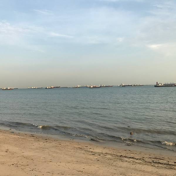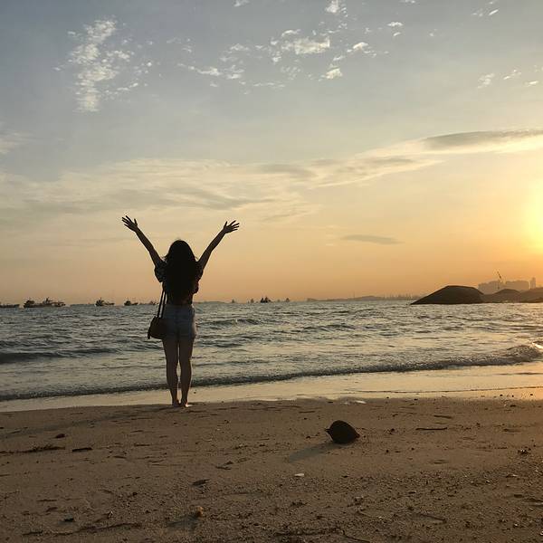 朋友带我吃了新加坡著名的珍宝黑胡椒螃蟹,人流量非常火爆,还好是提前预定了位置,才能够坐到室外的海景位。哈哈,其实也是一桌挨一桌,和大排挡感觉类似。黑胡椒螃蟹是比较经典的吃法,本来我想点象拔蚌的,但是太贵了,一只折合人民币小一千了,于是作罢。 新加坡的海鲜餐厅会先上一盆柠檬水,是给食客洗手的,如果喝了就闹出笑话了。刚端上来的时候我一看盆那么大就觉得应该不是给喝的,事实证明我是机智的。我才不会告诉你们我朋友第一次来的时候就喝了呢。不过话说回来,那么点水真的能洗干净吗? 吃饭之前先去海边玩了一会儿,夕阳西下,海风轻轻吹,一切都好美。