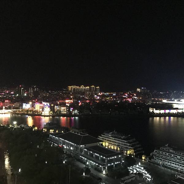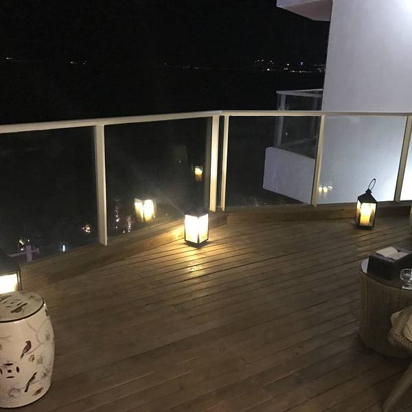 坐在宽畅的景观阳台欣赏夜景,好舒服。回下关酒店住我的无敌高层海景房喏回下关酒店住我的无敌高层海景房喏!