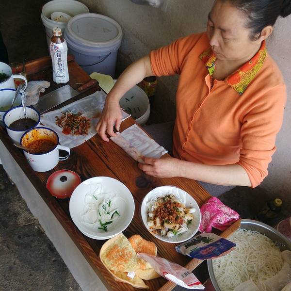 金骆驼 从大理到巍山非常方便,从下关的快速客运站15块钱汽车票,坐满即走,一个半小时左右的车程,翻过一座山可以看到整个下关。汽车站在巍山县城的西南角,可以五块钱坐个三轮车到古城,也可以走路1公里左右而已。巍山...从大理到巍山非常方便,从下关的快速客运站15块钱汽车票,坐满即走,一个半小时左右的车程,翻过一座山可以看到整个下关。汽车站在巍山县城的西南角,可以五块钱坐个三轮车到古城,也可以走路1公里左右而已。巍山在云南的地位就跟沙县在全国差不多,特别是在大理,几乎每走五步路就可以看到一家巍山粑肉饵丝,或者是巍山风味小吃,所以来这里,“吃”当然是头等第一件大事了!第一天晚上在这里解决的晚饭,也有幸成了关门前的最后两个客人,才六点多而已啊!不过老板说他们早上七点九开始卖了,卖完就关门,所以食材新鲜。街上随处可见米糕摊子,远远就可以闻到清香味,云南人爱吃米可真是一绝,米线、饵丝、饵块、米糕全是米做的,又各有风味,甜咸皆宜。一根面应该是巍山最特别的小吃了,最有名的也是上过舌尖上的中国的就是这一家“苏老三”,也是上过吉尼斯世界纪录的世界上最长的一根面了。跟我们平常吃的长寿面差不多,一碗就是一根,一个人吃一根,一家人吃一根,一村人也吃一根,彩头不错。听老板介绍一根面一定要用最优质的小麦,才能醒出有韧劲不会断的面,做的时候还要不停地涂油,防止面条粘结。煮面出来的浇头更是大有讲究,一般是用当地最鲜美的菌菇、配上焖肉、竹笋、青椒,熬到入味酥烂,才可以盖在面上。难怪像我这样一边不爱吃面的人,在巍山也是连着吃了两天早饭,都是一根面!除了一根面,极富云南特色的各种凉皮、凉粉、油粉、卷粉当然也是不能错过。这家小小的南门杨氏也是无意中发现的,虽然简单到没有装修,只是一个小摊子和几把小椅子放在屋里供客人使用而已,却是生意火爆,宾客盈门,而且都是当地人来吃。我们点了一份卷粉,也是米做的,清爽透明的白色粉皮,切成小段,配上鲜艳欲滴的红油辣椒,和清脆惹人的绿色小葱,看图片已经可以流口水啦,非常好吃。还有卖各种烤蛋的大妈,我们买了一个鹅蛋,一个鸭蛋。鹅蛋没有熟,回去又换了一个,鸭蛋很好吃。吃了这么多,再来个饭后甜品吧,竟然还有白酒味道的冰棒???当然除了吃,巍山既然是古城,古香古色的建筑一定不少。城楼就有东西南北好几座,各有风韵。有些一看就是历史悠久,有些则是后来修葺一新的,但整体的风格还是统一的。,巍山古城的沿街铺面也都是我记忆中小时候外婆站在木板铺就的杂货店后面卖酱菜的样子,有些地方也有一些新进的小清新店面,但大部分还是安安静静的,当地人生活、做买卖的地方。经常可以看到成群的老阿妈坐在门口晒太阳、聊家常,不急不缓,时光静静地流淌着,好像又静止了。如果你想看看到大理和丽江年轻时候的样子,那你就来巍山吧! 展开