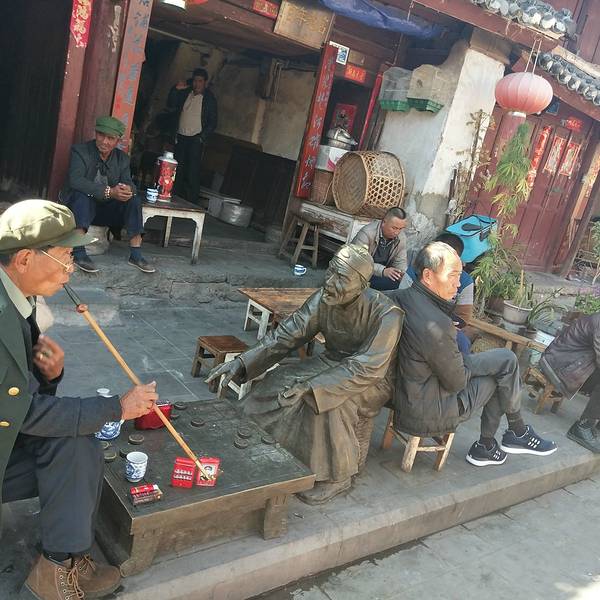 在去巍山古城的路上,途经一个小镇,很淳朴,卖的很多东西都是没有见过的,或者是不同的,很新奇,我们也买了很多东西,比如松子,大麻子,薄皮核桃(50元4斤,我们这边25--30元/斤,早知道买完那一蛇皮袋,又新鲜又好吃。)大麻子,买来喂鸟牛肉,绝对没有注水的,晚餐在客栈吃的就是这里买的牛肉,超级好吃。牛头是扔掉的,额……田边的菜市场,好多绿色蔬菜,都是大号的,比家里这边大好多……这是什么民族的来着?超大超长的白菜桃子1元/斤,有点淡巍山古城的门楼,烈日下的光影交错间,依然可以看到它屹立不倒的气魄街道,大多数都是本地人,只有少数几个游客,古城保留了比较古朴的韵味,比大理古城更加的原始。来来来,咱们比划一下棋艺……这些都是悠闲的当地居民。具有年代感的古书,小书……这家的凉米粉超级好吃,老板直接带过来的,即使放了辣椒也不辣,像我这种完全吃不了辣的人都能吃,味道更好。加辣……不加辣……凉米粉旁边的街道,很有感觉,孤独的老树,似乎在保护着周遭的一切;茅草屋顶的房子与老树相对,似乎在说,不管风霜雨雪,我们互相陪伴与依靠……直径应该差不多两米,不懂是什么用处难道当年或是如今仍然需要公共浴室吗?感觉同样是南方,应该不用啊老旧的收音机,播放机,磁带……想起小时候,使用复读机和磁带的年代(妥妥地暴露了年龄,嘻嘻……)现做的面条,本地人的最爱之一,直接挂出来晒,很长的一条啊,为什么晒干之后挂着不会断呢?臭豆腐还是干豆腐?也是晒的,原始的就是最好的说起古城古镇,似乎都有一种印象,古老的房子,悠闲的老人,结伴的聊天,最能体现古城古镇的情调。据说,在古城没有开发前,有很多百岁以上的老人,开发之后,这些老人频繁地去世,是否跟开发后环境的改变有关呢?我希望他们都能过着他们想过的生活,一如我们也希望自己能过上自己喜欢的生活。巍山古城烤茶,3元/杯,无限续杯,热水壶已经准备好,可以坐一下午,喝着茶,看着当地人下棋,听着不怎么听得懂的聊天,偶尔与老板聊聊……很是惬意我们是在这家喝的烤茶,老板夫妻二人态度很好,很多当地人在 展开