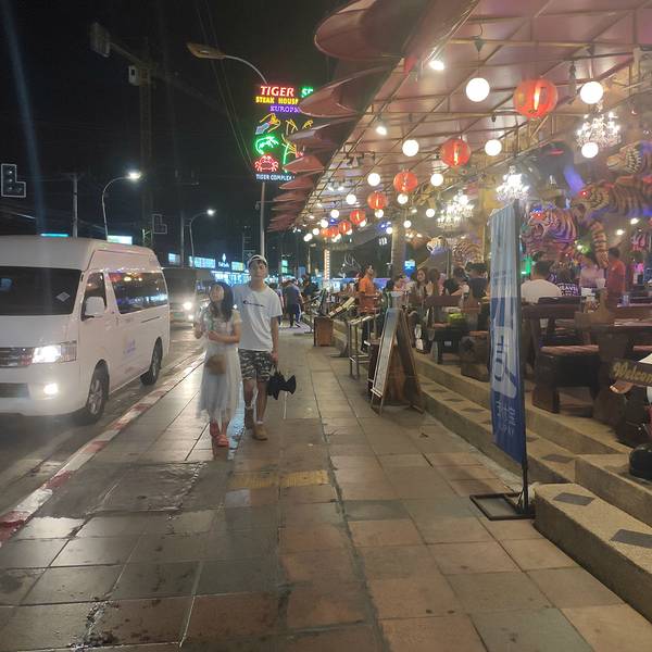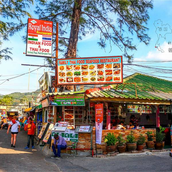 芭东海滩的大排档,值得一试,街边密密麻麻的大排档,海鲜、小吃、特色应有尽有,价格也很实惠。但是记住越会讲中文的老板越会“斩你”,记得一定要讨价还价,而且泰国的1公斤是600克,在买海鲜的时候注意是按只计算还是斤。