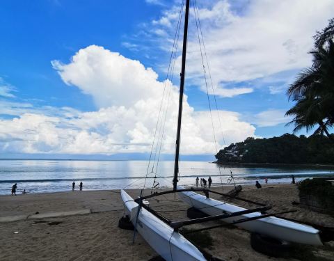 你可以在海滩的北部坐长尾艇或潜水,探索邻近的海滩,或做个环岛游。如果不喜欢潜水的,完全可以随性地在海滩上走走看看,拍拍照,和当地人聊聊天,和可爱的当地小朋友合影留念。 海滩靠中心的位置有一片公共区域供游人休息和戏水,多数都是老外。海滩上有很多公用的沙滩椅和阳伞,你可以看到很多老外在冲浪,打沙滩排球、玩水上摩托艇或者空中拖伞。 日落时分,除了可以欣赏到夕阳西下的美景,更能看到满载而归的渔船。海滩后方有一条ThLongpa街,上面有成排的旅舍和餐厅,不少喜欢长期旅行的游客经常会选择在那里常住下来,气氛还不错。 此外,如果想欣赏夜景的人也不要错过了,夜晚的卡马拉海滩上人不是很多,很宁静,只听见海浪来回的拍打声及一两家小店放出的节奏感很强的音乐声,手里提着鞋子,漫步在沙滩上,那种感觉不言而喻。