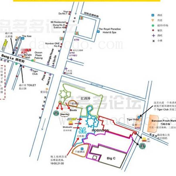 普吉岛 芭东 巴东 海滩上最著名的购物地标,一进商场,就感觉到满满的泰式小清新,环形建筑、帆船、水池、喷泉,彰显了浓浓的泰式风情,这种颜色鲜艳的调调还是很喜欢的。商场里,各种各样的品牌店、美食店,boot...普吉岛 芭东 巴东 海滩上最著名的购物地标,一进商场,就感觉到满满的泰式小清新,环形建筑、帆船、水池、喷泉,彰显了浓浓的泰式风情,这种颜色鲜艳的调调还是很喜欢的。商场里,各种各样的品牌店、美食店,boots、Robinson、屈臣氏、bigC这些 中国 人热衷去的地方都齐全了,买特产、化妆品、护肤品、零食……可以一次性在这里搜罗了,嗯~带上钱、带上卡,不够还有支付宝~买买买一大堆,最后才发现一个人提不动橙、黄、红、青、粉、绿……各种颜色的建筑,也是好喜欢。