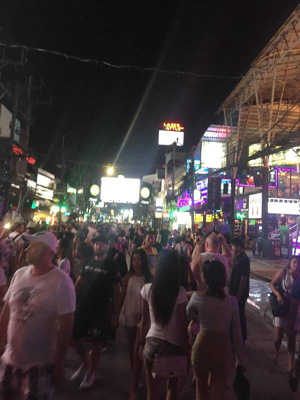 晚上顺利到达普吉岛托尼酒店,在芭东离西江冷很近走路用不了10分钟就到了,房间还是挺大的三人间专门有个单人床,这个挺不错的,其它的酒店都是加的床很小。每晚也得600rmb。三人住宿真是不合适晚上自己出来逛了逛,这是第二次到普吉岛了