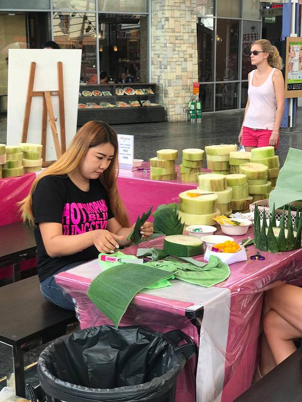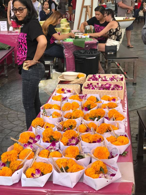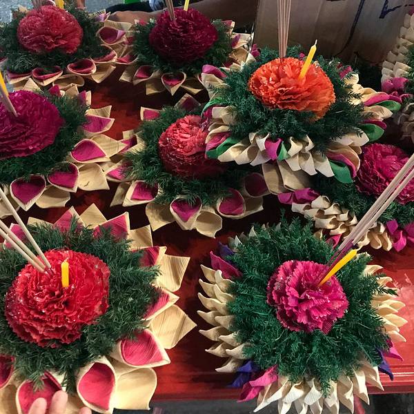 在江西冷正好遇到工作人员在做水灯,都是用环保材料做的,看着还蛮有意思的,很期待成品是什么样子的。楼下美食广场吃午饭,充储值卡消费。来到这里发现,原来方面面炒着吃,也可以那么好吃哈哈。今天逛了NARAYA曼谷包,我们真的在里面逛了很久。第一次深度逛江西冷,还有Big C没逛到,有点佩服叶姐我们两个能逛的女人哈哈哈。😄三点多回到酒店休息。喜欢游泳的亲们下水玩耍🏊,我还是拍拍拍。📱六点半出门觅食,路边看到很多卖水灯的,很好奇她们是拿到海边放吗,很想去看看。晚饭后我提议去海边看看,懒惰的海哥不想去。应该还蛮壮观的,有点小遗憾。各式各样的水灯今天晚餐P.S餐厅,在酒吧街对面,晚餐味道超赞。这家真的强烈推荐,随便点都好吃,而且价格也不贵。菠萝饭超大份,水果也很便宜。这几天必点饮料大椰子🥥,喝完了还可以吃果肉,没有理由就是特别喜欢。江西冷广场上的水灯做好了,放在水里很漂亮。广场上整点有水幕音乐表演。难得遇到水灯节,还有表演。据说今年泰国的孔剧表演成功申遗了。泰语歌唱表演听不懂,感觉像东北二人转,或者小品九点在酒吧一条街体验下嗨到爆的氛围。选了人气最旺的音乐酒吧,喝喝酒🍺,听听歌特别享受。水灯节背景墙今夜伴着音乐,好梦!