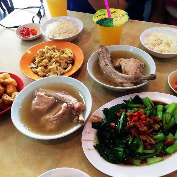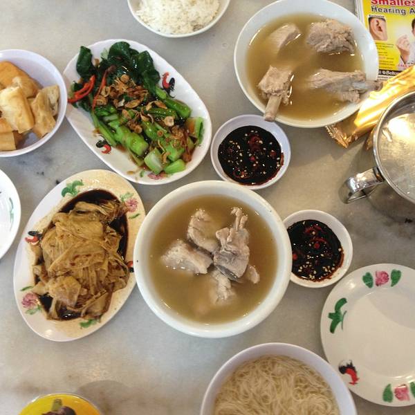 发起人肉骨茶,招牌是排骨,炖得很软烂,个人觉得比松发好吃经典的菜是:排骨、豆腐、猪什、面线,全部价格23新币左右