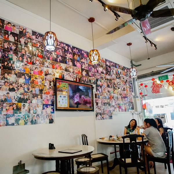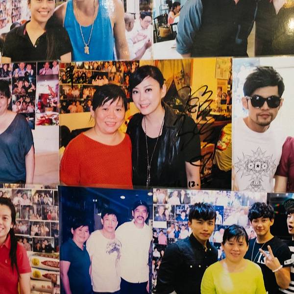 那发起人肉骨茶第二大特色就是他家店的墙,墙上密密麻麻全是各个明星来这里吃饭和老伴的合照,那真的叫一个密密麻麻,什么周润发,谢霆锋,周杰伦等等全有,足以可见这家店在新加坡的受欢迎程度。