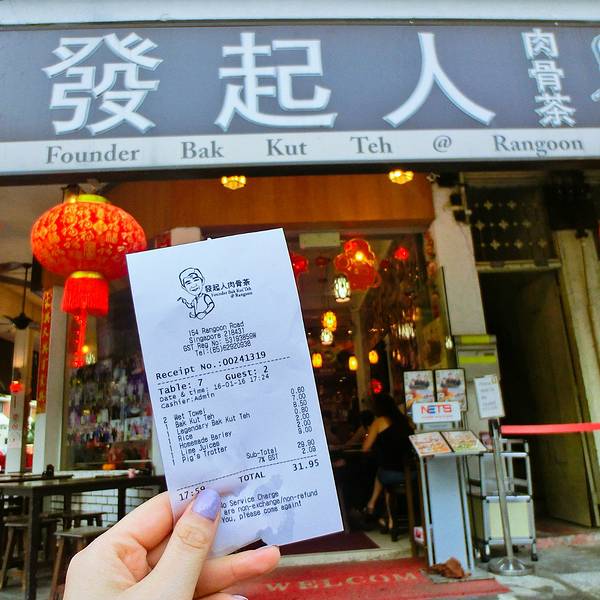 临走之前来到了大家都推荐的发起人肉骨茶。这里要说攻略上有一点儿错误,不要坐地铁到纽顿(Newton),到这里之后离着还很远。一定要坐地铁到花拉公园(Farrie Park)下车,下车之后就是Bangoon Road,然后沿着路走5分钟左右很不起眼的一家店。