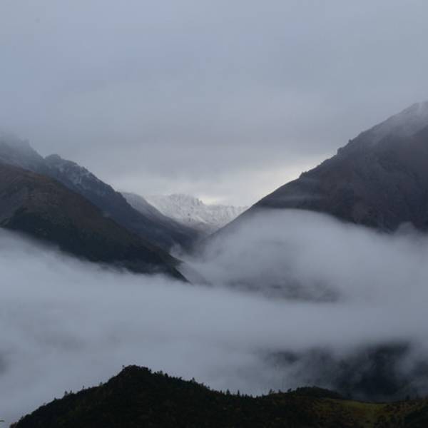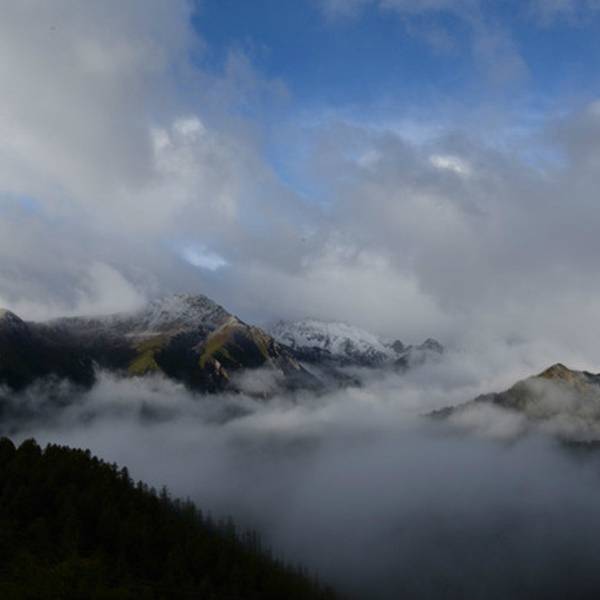 从奔子栏到飞来寺需要经过白芒雪山垭口(4500米),一路云雾缭绕。