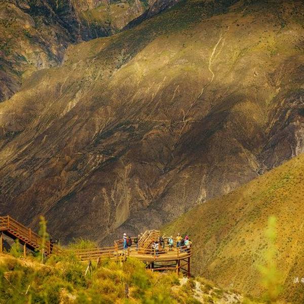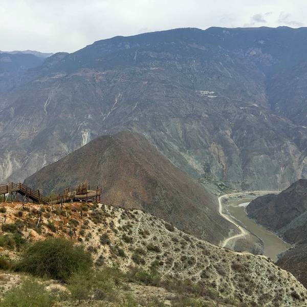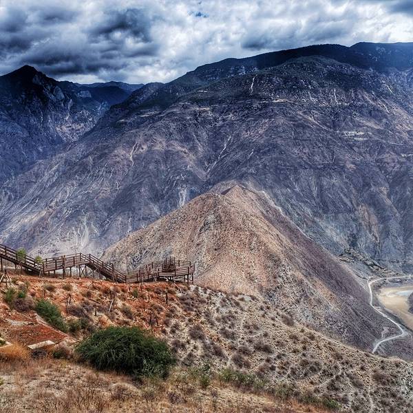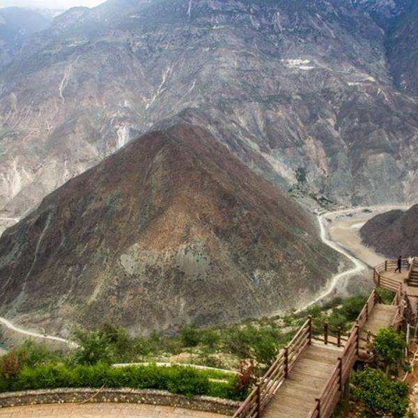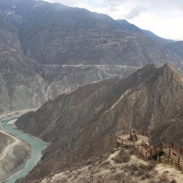 拾阶而下搭建了两三个观景...金沙江大拐弯也叫做月亮湾,距离香格里拉约80公里。