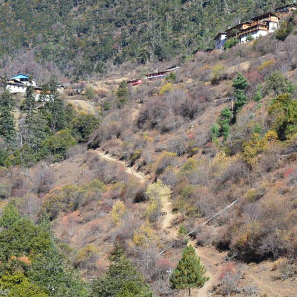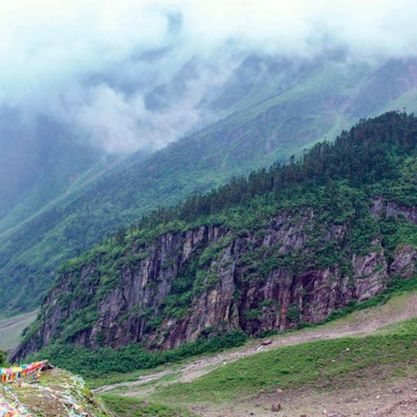 📍位置:飞来寺旁左边出口,上面有一条挂满经幡的公路,注意留意一块标记着出口&入口的石碑