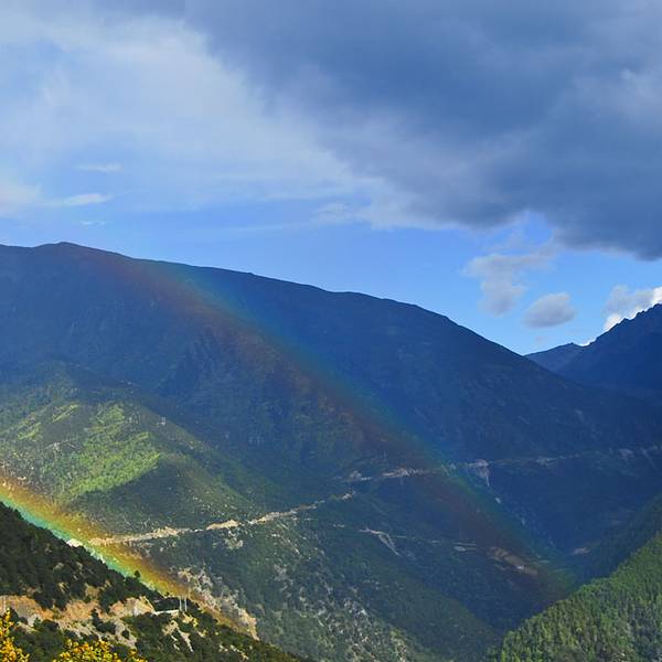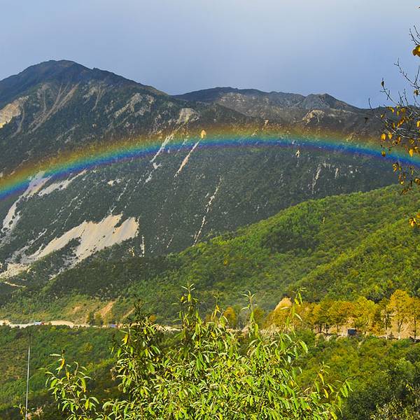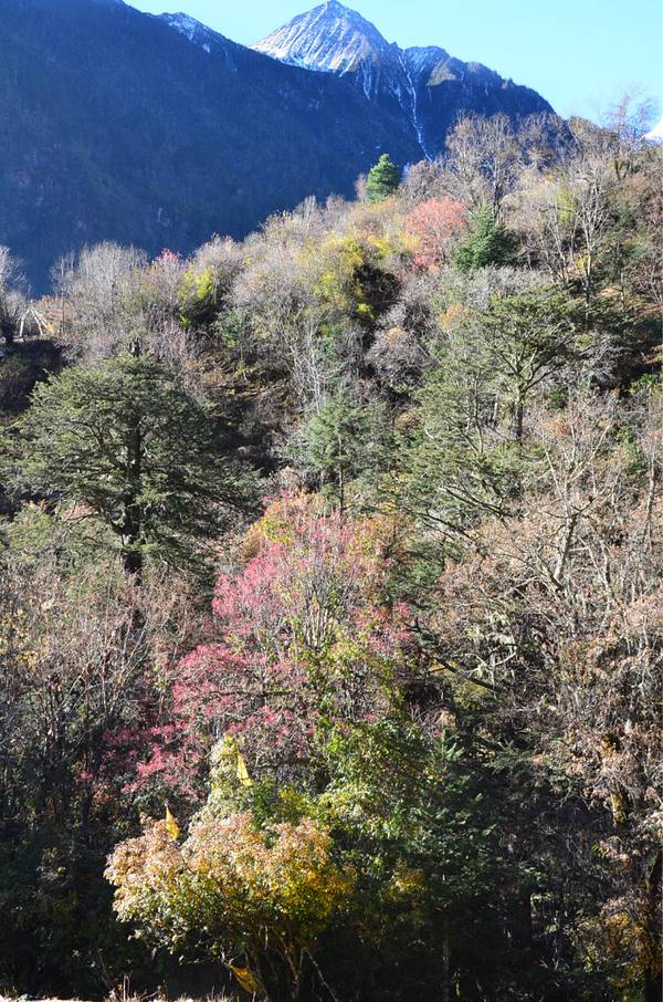 皇冠山;白马雪山;十三白塔;德钦县城进入飞来寺。由于已进入秋季,沿途的树林开始变黄变红,还有开着花的紫叶树,色彩斑烂的树林,衬着头顶上的蓝天白云,美得人醉。过了白马雪山天空飘了阵小雨,突然在车子的左边出现了两条彩虹,由于当时刚过白马哑口不远,还是在海拔4000多米的高原,所以彩虹很低就在身边,真是“身边彩虹低头看”!快到德钦县城时,路上又出现了一条半圆的完整彩虹,我们正好穿过这道彩虹进入县城,非常神奇的经历。下榻飞来寺的卡瓦格博酒店,安顿好后,已是傍晚,只见整个雪山露出全部容颜,神圣的卡瓦格博峰就在眼前,神女峰也摘下了她神秘的面纱。这里天空出现了晚霞,难得的画面。可回来后发现照片与当时的景色相差较大,远没有当时梅里雪山的挺拔、神圣的雄姿。 展开